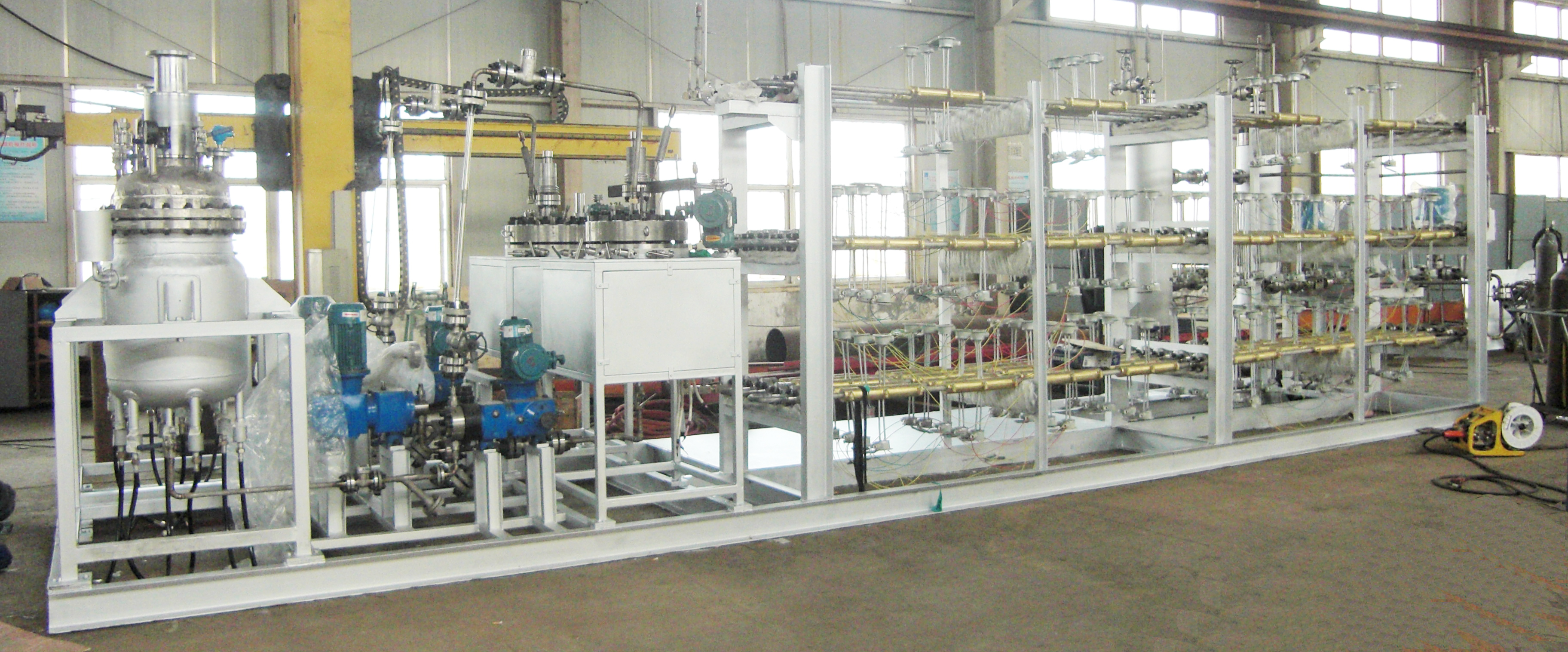 加氫反應(yīng)分為吸熱反應(yīng)和放熱反應(yīng),有些加氫反應(yīng)在反應(yīng)過(guò)程中會(huì)釋放大量的熱能。為了生產(chǎn)安全,并及時(shí)降低釜內(nèi)溫度,有些工藝要求釜內(nèi)配大面積的冷卻盤(pán)管。此時(shí)單層冷卻盤(pán)管無(wú)法滿(mǎn)足工藝要求,需要雙層或更多層盤(pán)管有效及時(shí)降溫。正威機(jī)械生產(chǎn)的6層盤(pán)管內(nèi)配吸氫攪拌槳,加…
